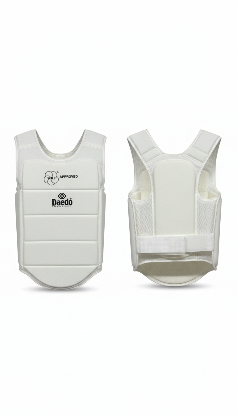 En el Karate de alto rendimiento, la velocidad es clave. El Protector de Cuerpo Daedo, homologado por la WKF, ha sido diseñado para ofrecer la máxima seguridad sin añadir volumen innecesario a tu silueta. Es tan ligero y ergonómico que olvidarás que lo llevas puesto, permitiéndote moverte con la explosividad que exige el Kumite moderno.
